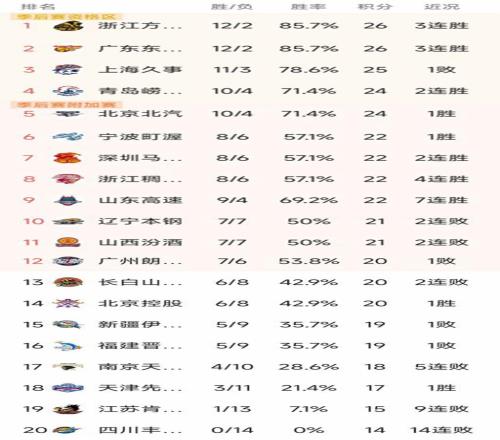 CBA常规赛第14轮结束了所有比赛,最新积分榜如下!