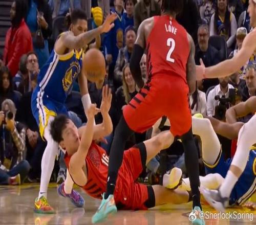 在比赛进行到第四节时,杨瀚森获得出场机会。在一次进攻回合,杨瀚森倒地拼抢,但后脑勺不慎撞到勇士后卫威尔-理查德膝盖上,倒地后杨瀚森非常痛苦,迟迟未能起身。开拓者医务人员及时进入场内进行检查,在场的开拓者队友也都围绕在杨瀚森身旁关切地关注着他的情况。