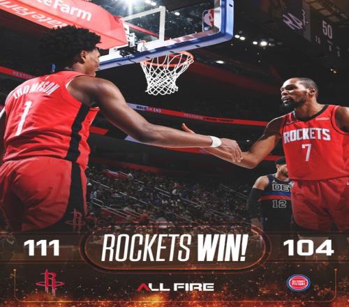 火箭4人15+终结活塞4连胜杜兰特32+7申京19+5坎宁安12+8