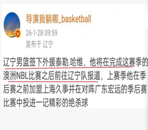 有意思的是,随着杨鸣下课,球队第六外援,也是浮出水面,根据辽宁媒体人透露,目前,辽宁队已经签约了泰勒·哈维,接下来,他将会代表辽宁队参加CBA联赛。