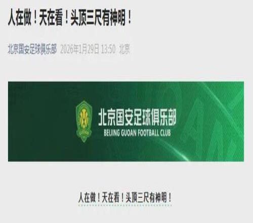 北京国安发文“人在做,天在看!头顶三尺有神明!”后,删文